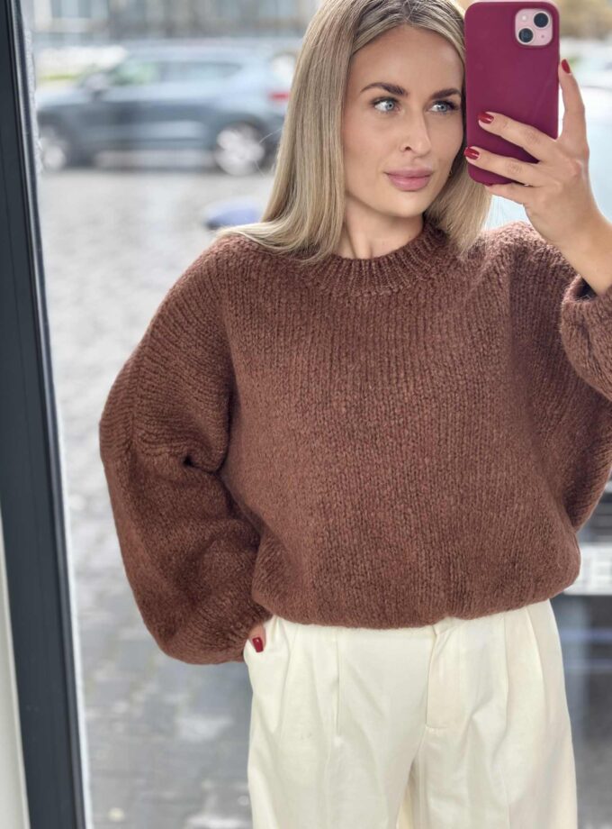 Sweter Dzwonek z Guzikami w Serek Beżowy