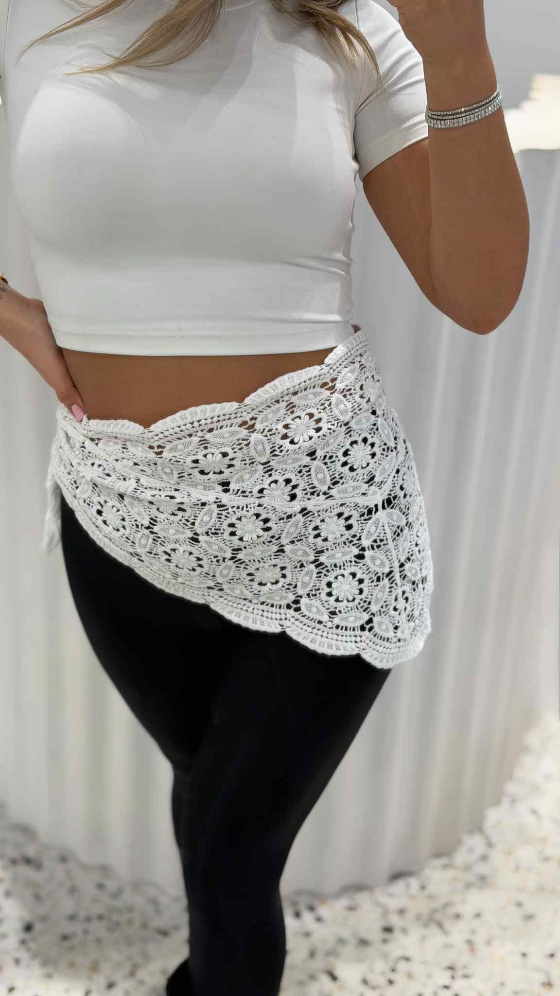 Chusta może służyć jako nakrycie głowy oraz można ją zawiązać w pasie .
