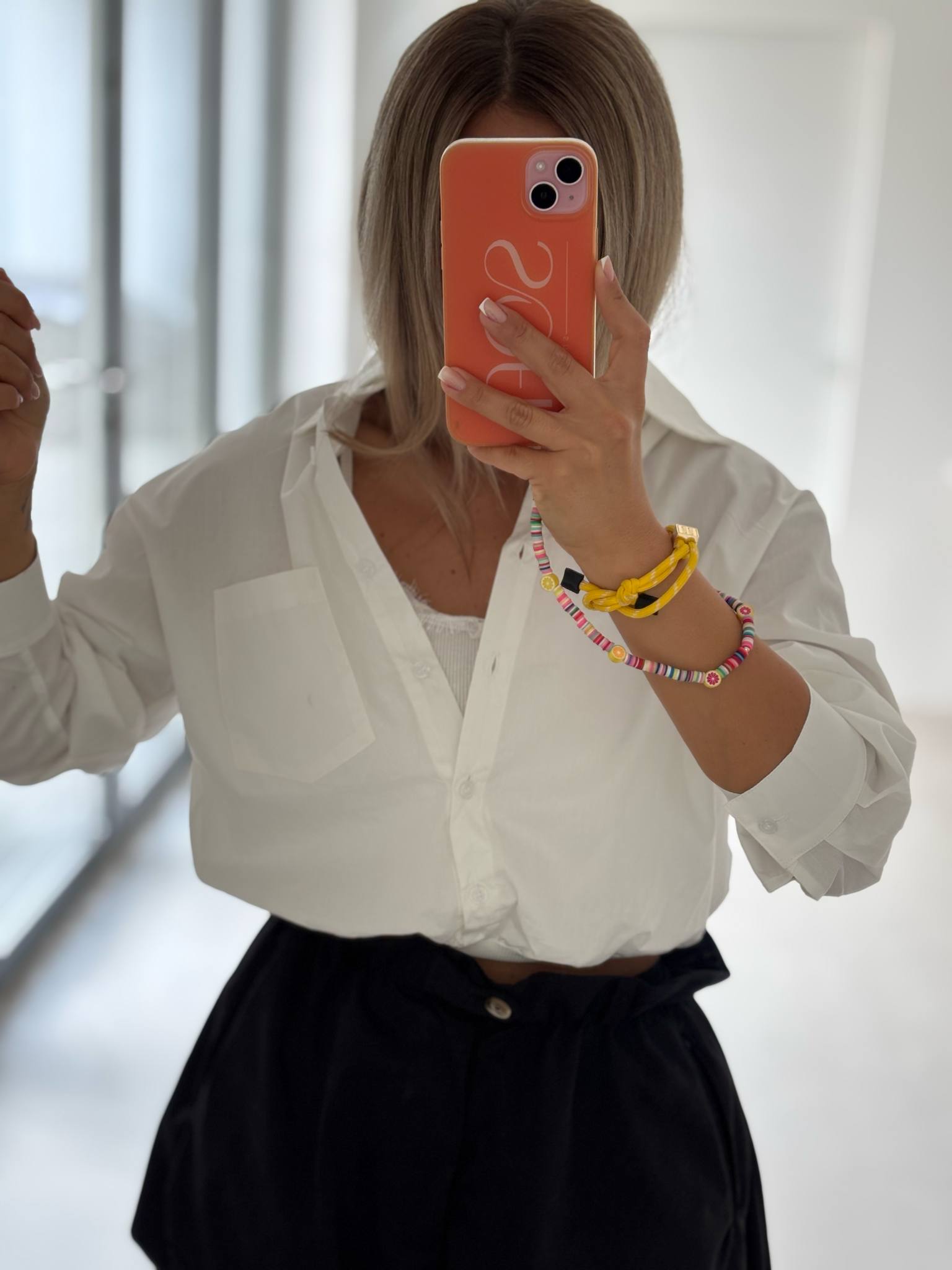 Biała koszula z topem pod spodem to ponadczasowy i bardzo praktyczny zestaw — idealny zarówno na co dzień, jak i na bardziej formalne okazje!