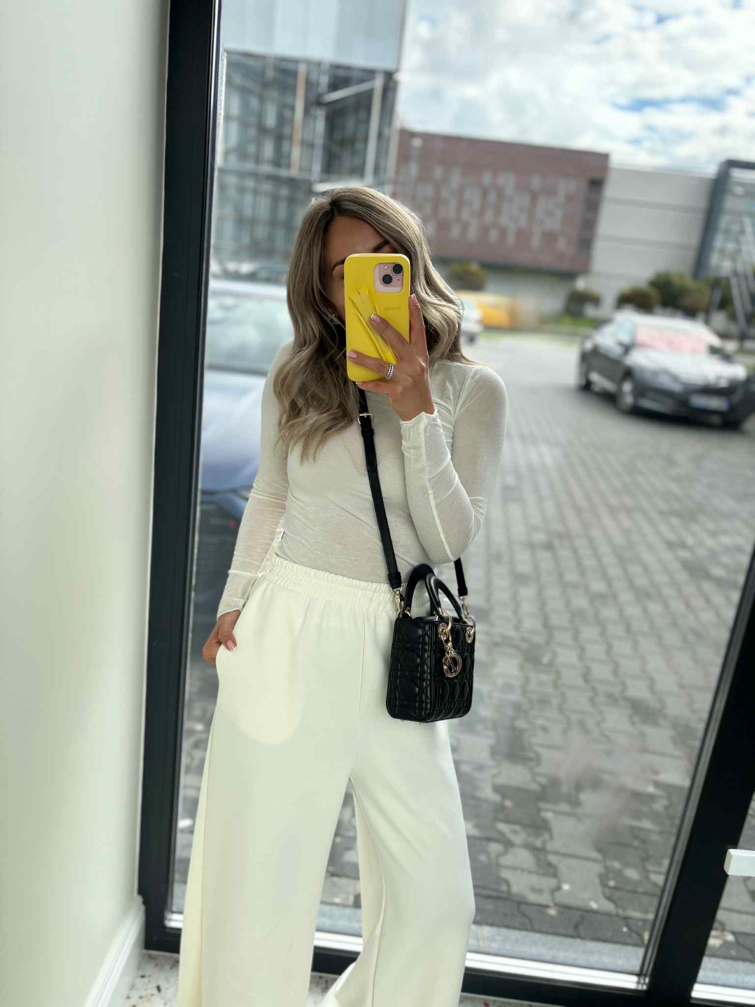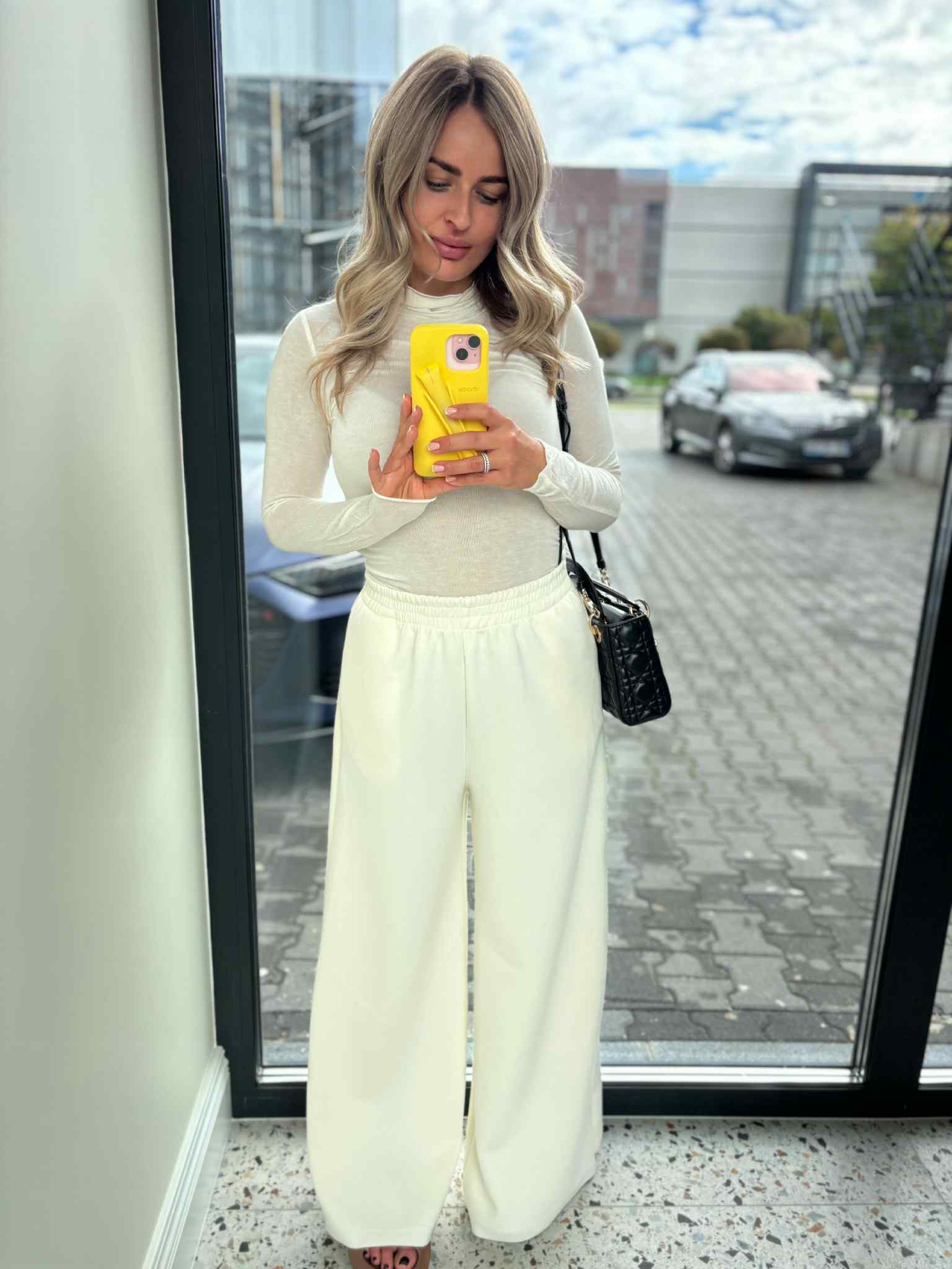 Długość całkowita spodni mierzona na płasko od pasa do końca nogawki 105 cm .